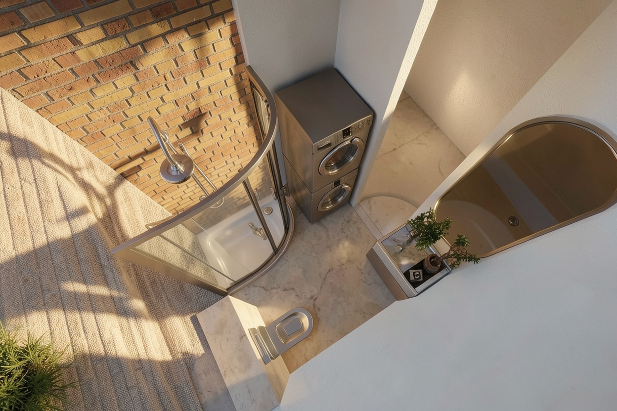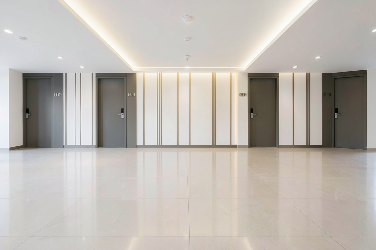 modernist exterior shot keep everything the same just add the logo wave on it architecture