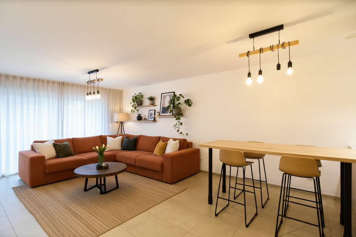 modern luxury walk in closet with open wardrobe shelving in light wood finishes and matte black hanging rods central island with drawers and marble countertop featuring intense dark red and white veining integrated vanity area with small oval mirror and upholstered chair in muted neutral fabric light wood flooring and a large skylight overhead creating soft daylight illumination minimalist black track lighting across the ceiling clean architectural lines calm neutral palette refined and orderly atmosphere with realistic material textures and subtle shadows