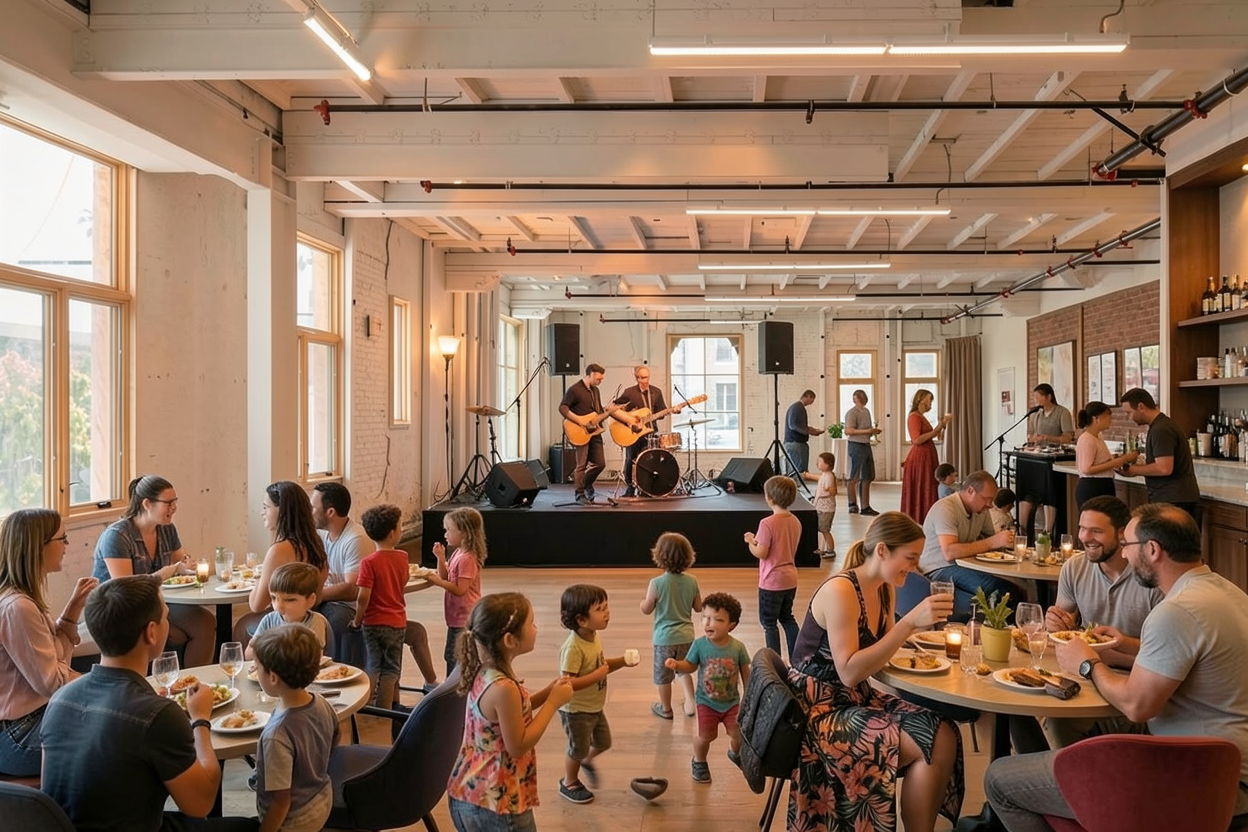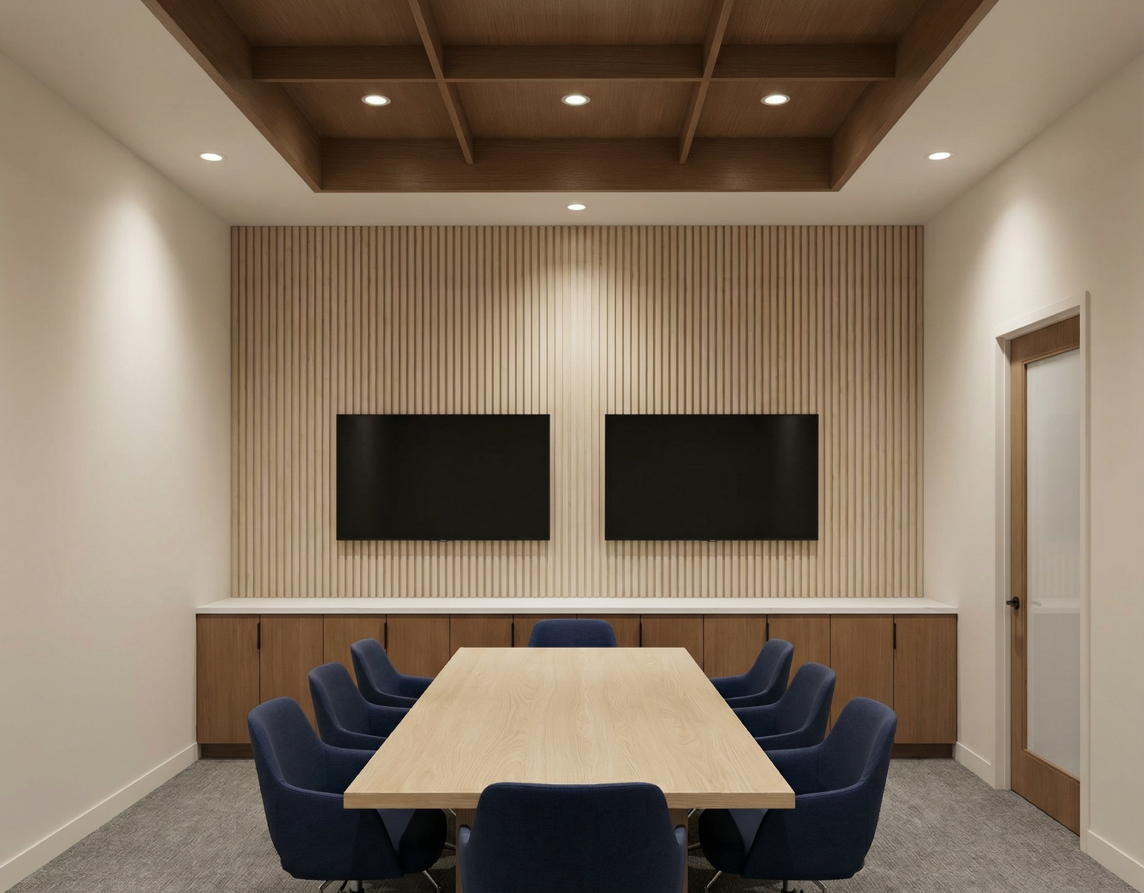 provide a photorealistic rendering keep all the elements proportions and materials as they are provide north daylight through the glass only add linear wall wash illumination at the bronze wall keep logo as is