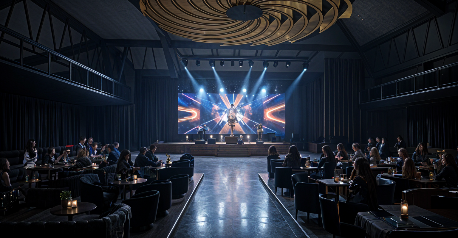 reate a minimalist japandi style yoga studio with three arches in the background wall high level windows on the sides in authentic historically preserved building with aerial yoga prompts as features