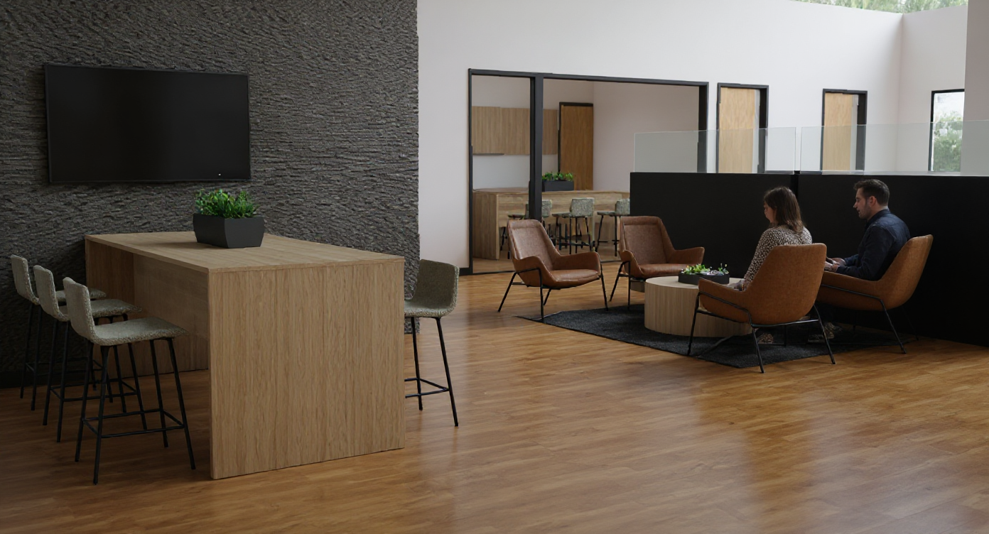 there is a small concrete cap above the front door and the window on the right is a window and not an all height bay