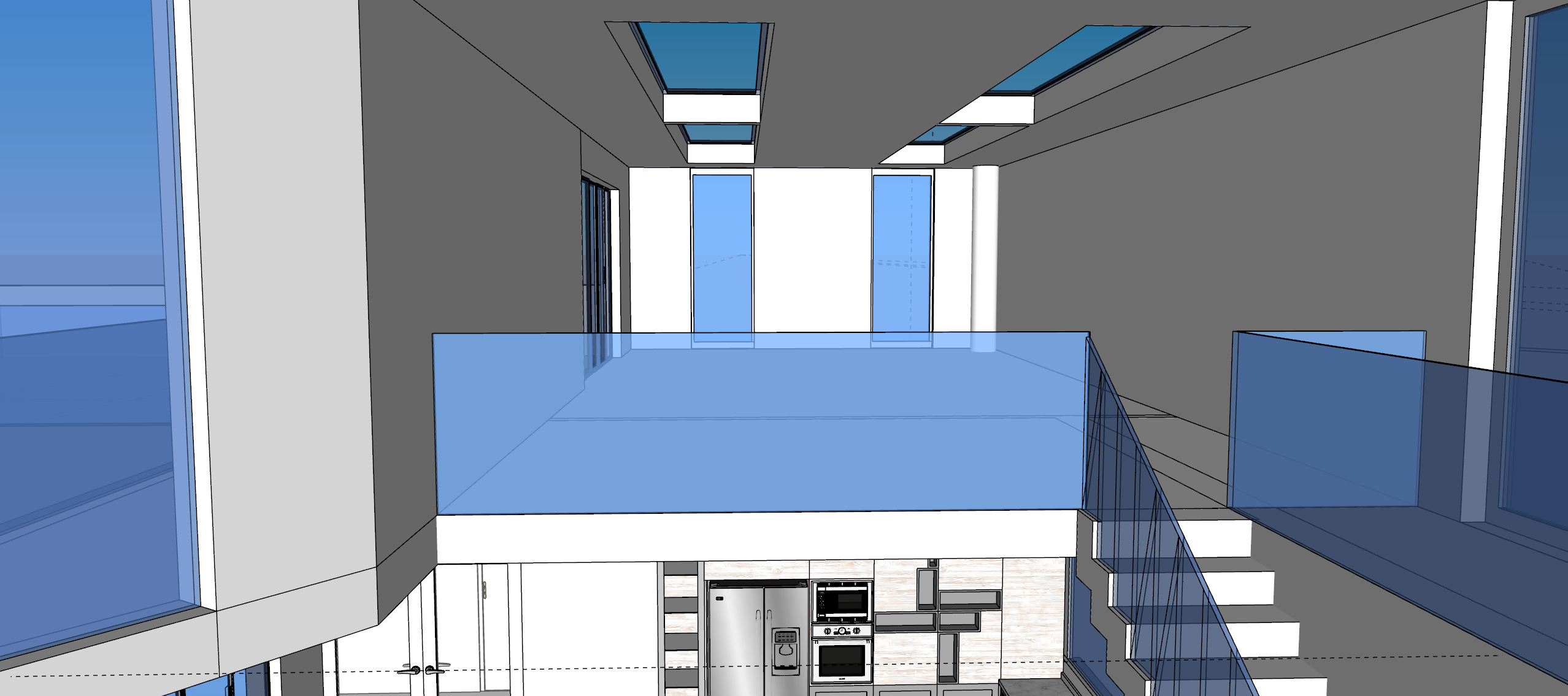 make this realistic and place statues in the view as an art gallery and place people looking around the art gallery the walls need to be solid white walls to make the room look modern and clean with no views onto any outdoor spaces architecture