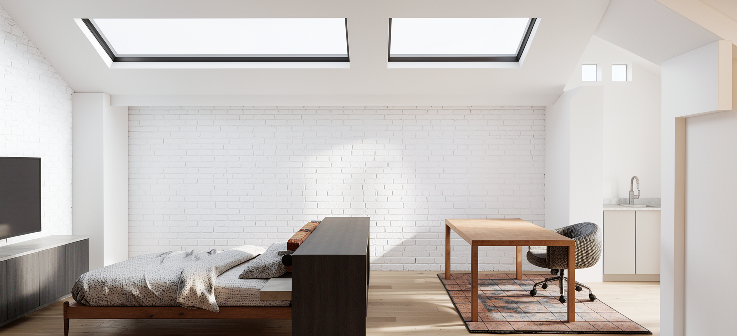 arches made of perforated copper sheeting arched windows offer a view of the old town polished concrete floor black concrete ceiling with ventilation