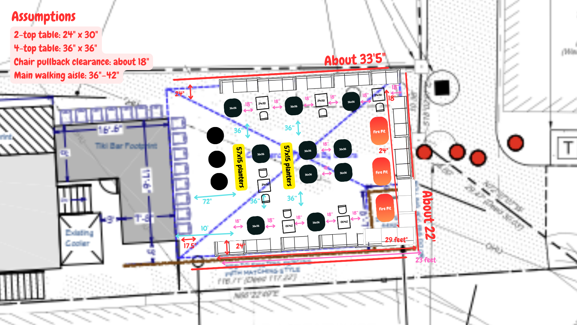 convert this floor plan into a realistic isometric 3d view of a full house show the space from an elevated angle with furniture walls and details visible this a restaurant layout for a modern outdoor tiki bar please use teak wood and rattan light fixtures warm soft lighting add greenery and a white metal pergola use the same furniture as shows on the plan do not change the orientation of the floorplan