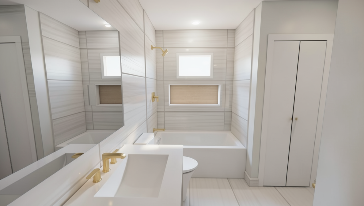 make this look like a photo realistic rendering keep everything the same just make tiles whiter but keep their texture