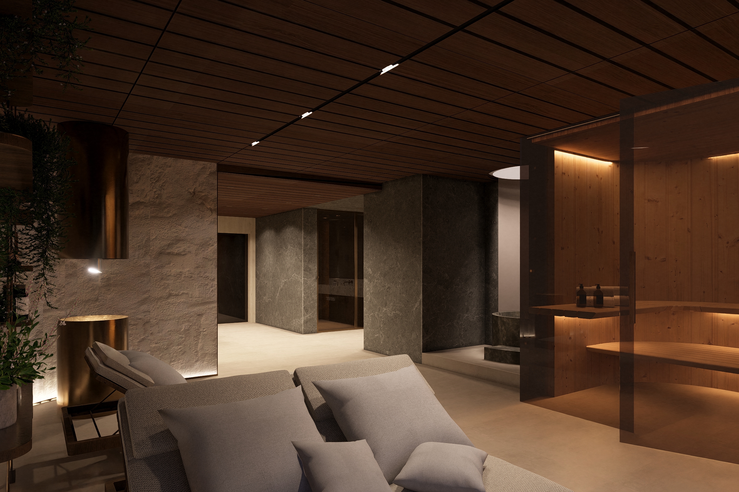 create a photorealistic image add lighting replace materials with photorealistic real materials add reflections and shines to materials insert an ies light cast insert people having sauna leisure time european polish nation