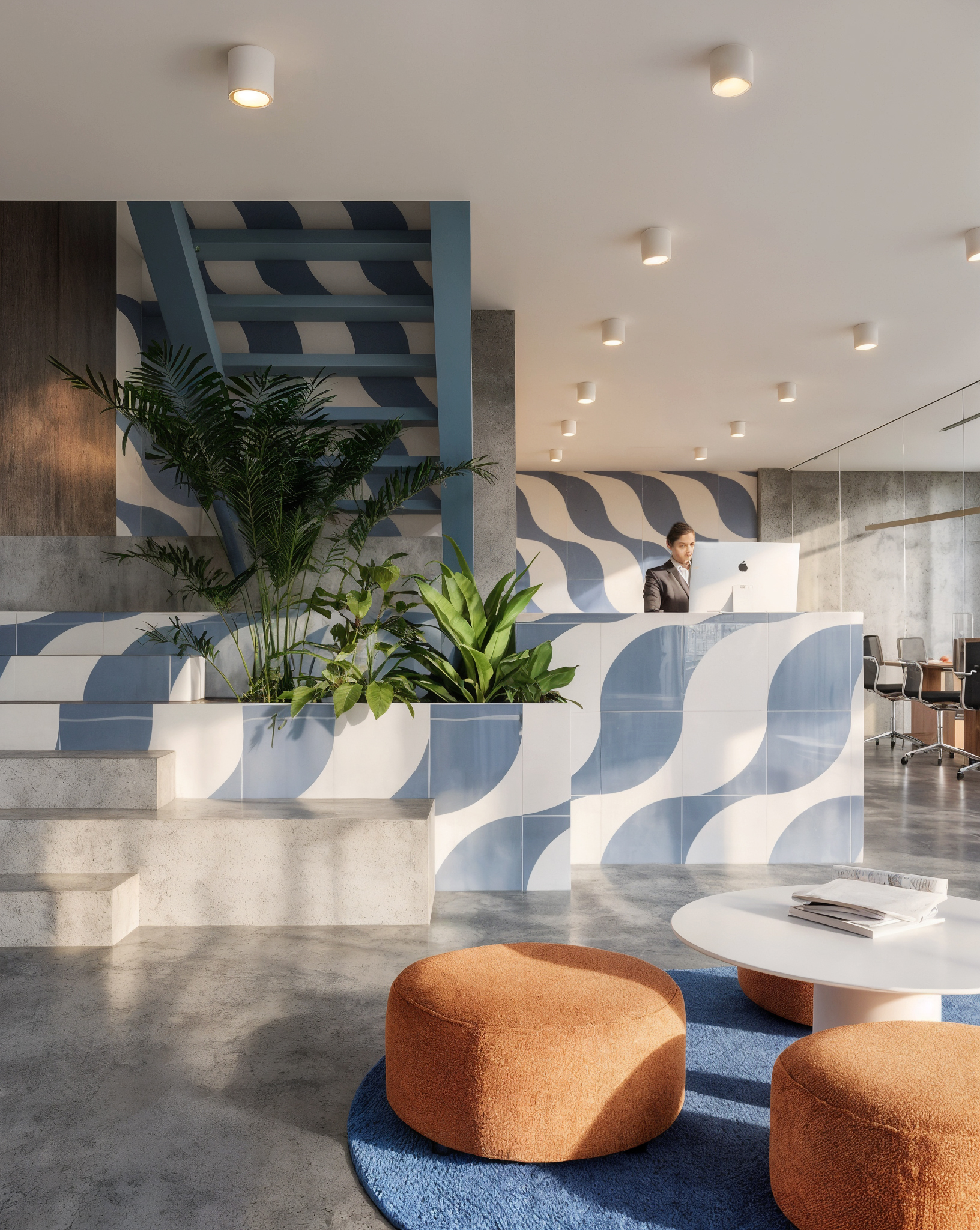 improve the face of the woman behind the computer