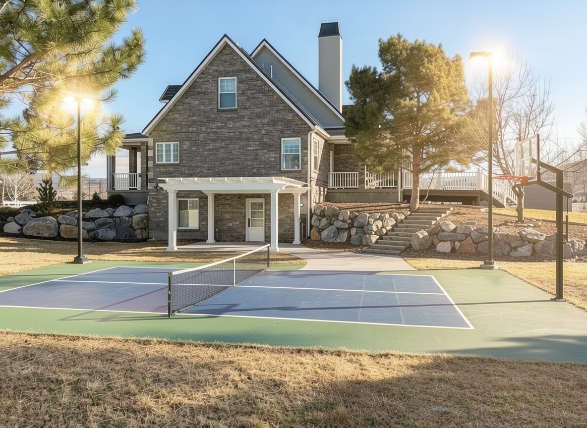 add a concrete walk way that starts right behind the left post of the pergola and runs up the yard right in front of the retaining wall to the left