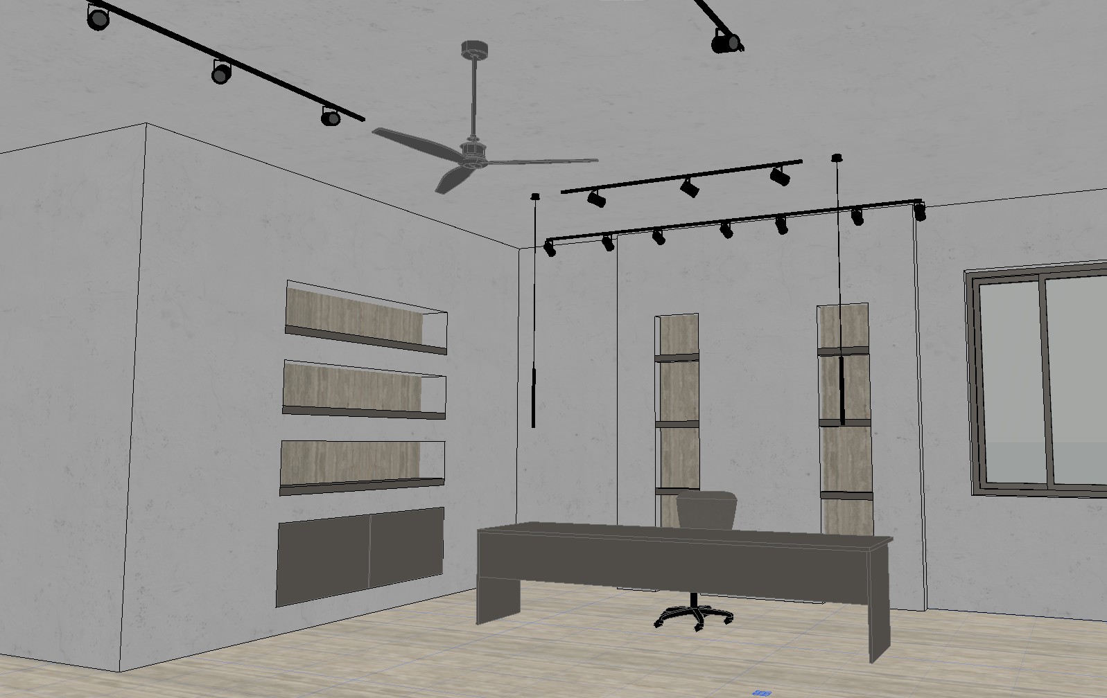 high quality lights on floor matte marble travertino paint walls off white render a macbook on desk