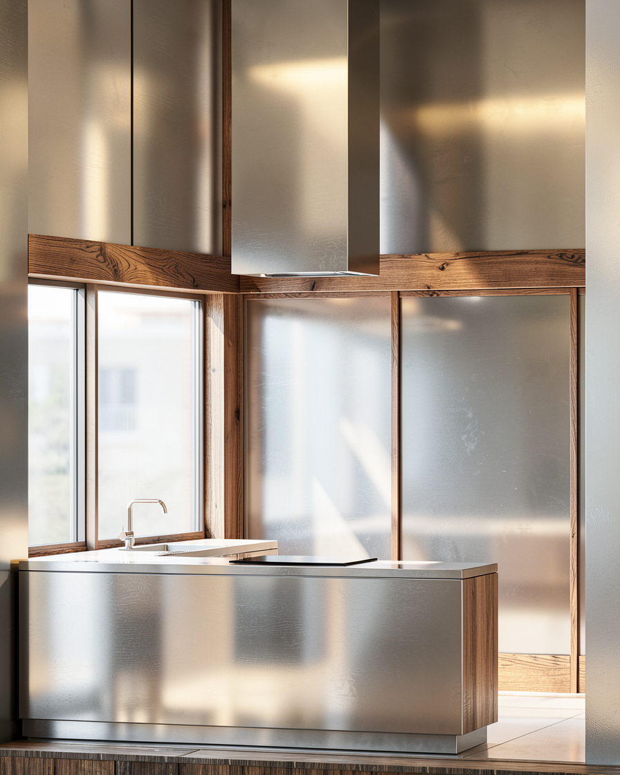 keep the wood where there is wood and stainless steel where the grey is