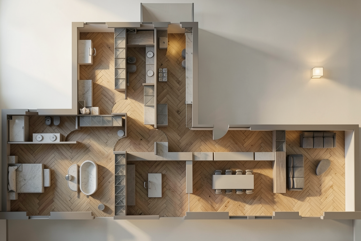 transform the provided super market store interior image into a photorealistic render with white day light atmosphere soft glowing spots light and few people in tables also put someone in the juice bar with fruit display keep everything exactly the same proportions same bar shape same ceiling same wall finishes same widows same materials and same spatial configuration do not move add or alter any objects geometry textures colors or furniture positions add some promotional product in the display set of the entrance