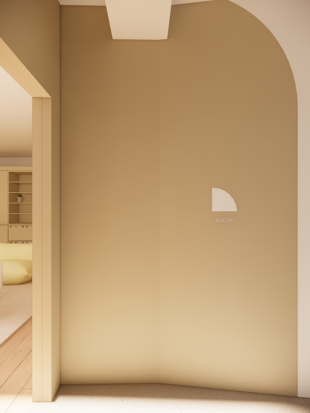 transform the provided interior image into a high end photorealistic architectural render this is a strict image to image refinement do not alter the design keep everything exactly identical to the reference image design geometry lock same spatial configuration same proportions and scale same furniture shapes geometry and positions same ceiling height 10 feet add small recessed white ceiling light fixtures and centered in the hallway add realistic frame to all doors the same color as the door on the image and hardware must be brush chrome just like door handle no objects moved resized redesigned recolored replaced or reinterpreted material consistency lock use exactly the same materials colors textures and finishes as the reference image no variation no reinterpretation no color shift no scale change flooring finished raw concrete floor add very subtle surface roughness only walls limewash plaster as image exact colors ceiling smooth painted gypsum glass wall slight reflexion and transparency of the glass section in the right wall lighting preserve existing white fixtures and suggested lighting slightly turned on floor trim must be small thin commercial vinyl trim that match exactly the color of the wall or paint detail behind wall signs must remain exactly as on the image