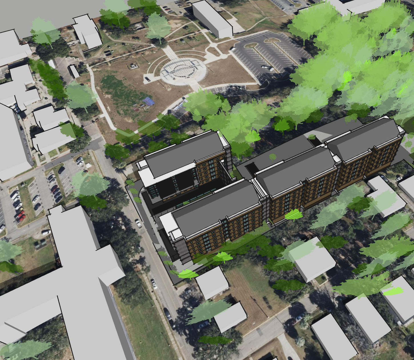 make the roofs on the new building all the same color grey standing seam metal
