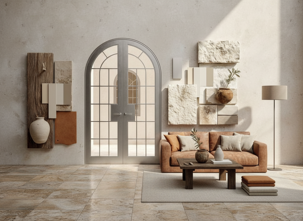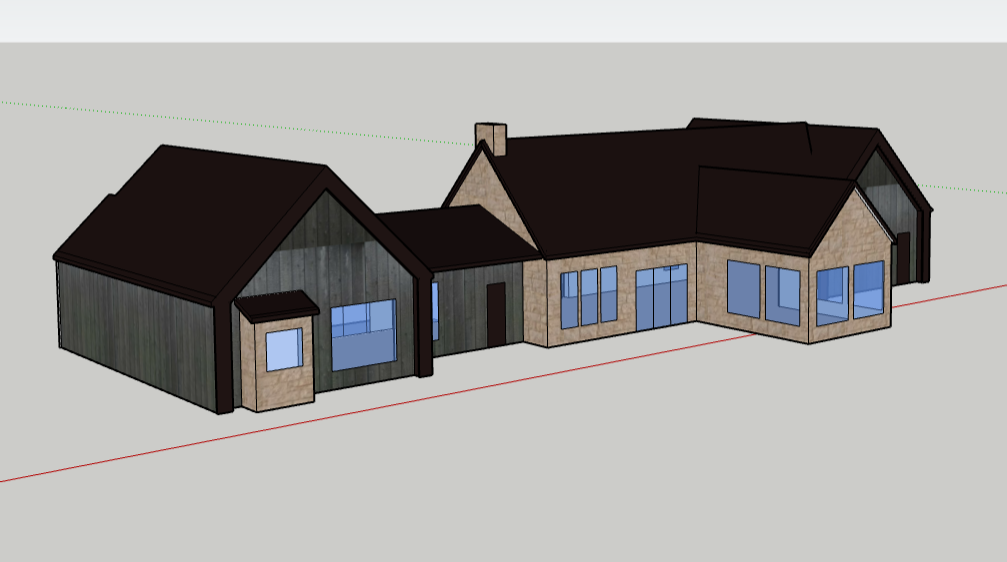 in a prairie manicured yard black metal roof black vertical shou sugi ban siding and stone