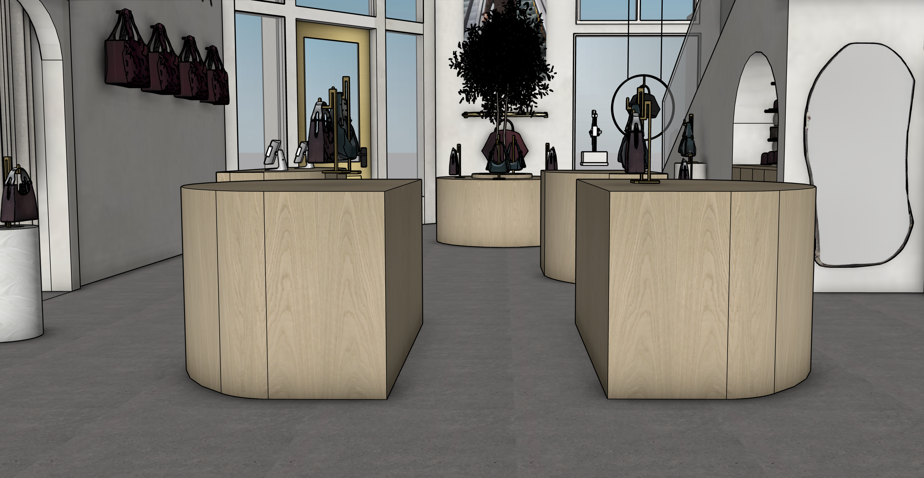 make photorealistic make steps white oak and floor cement
