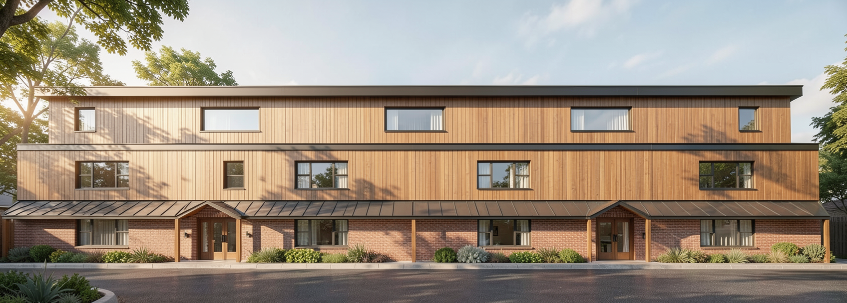 re render this make the exteriors walls meek moss greendet606 make the roof trim davanzo beige det664 make the balconies pueblo white det675 the window trim should stay white the doors and door trim should be blackjack de6371