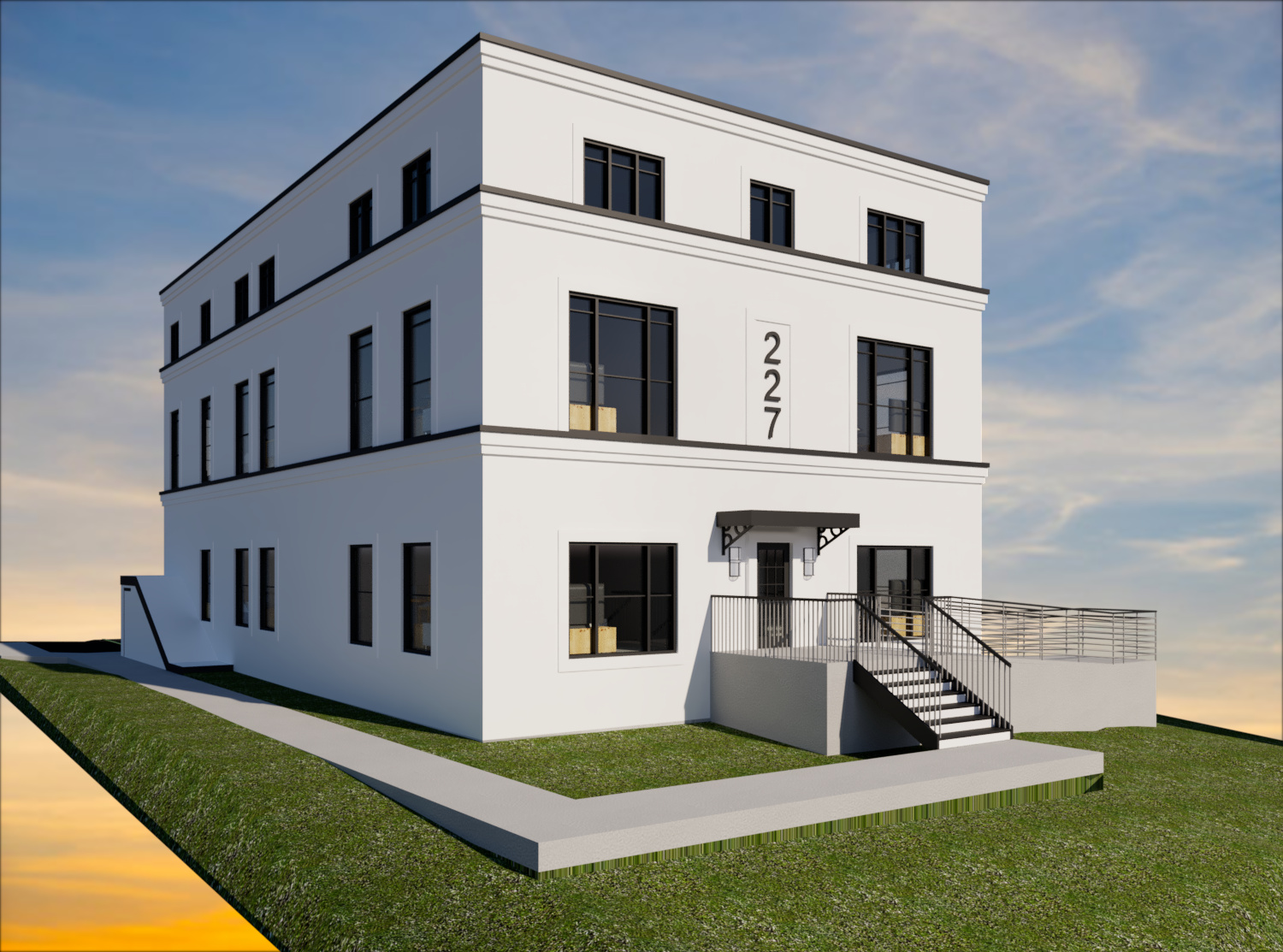 do not change the integrity of the building or the numbers on the building just enhance to be more photorealistic