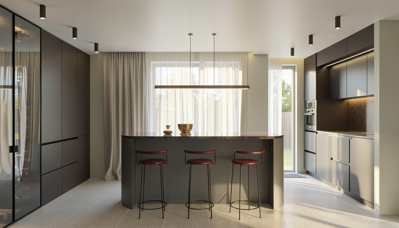 cr er une image photor aliste ne rien modifier de l image de base keep identical camera angle framing and composition keep all materials exactly the same kitchen island cabinets wood finishes floor ceiling pipes lighting windows keep exact same colors and tones everywhere keep identical lighting and shadows do not redesign restyle or reinterpret anything do not change textures or contrast no color shift no warm cool adjustment only perform the requested removal and replacement photorealistic high detail natural lighting
