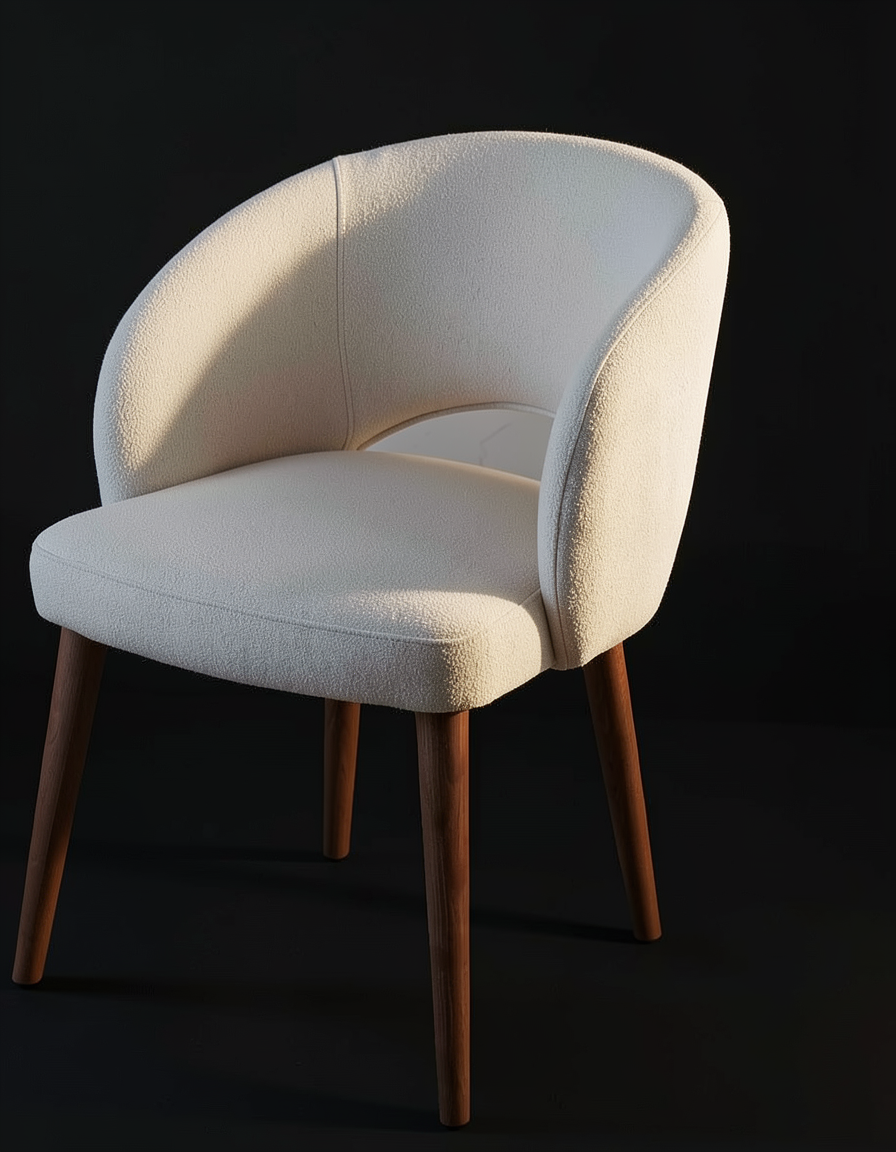 strict requirement perform a local only de lighting to neutralize harsh sunlight hotspots the ai must lock the color profiles of the wooden legs and the fabric the hex values and saturation of the walnut brown legs must remain 100 identical to the original with no lightening or tonal shifts target only the overexposed luminosity on the upholstery replace sun glare with a flat neutral diffuse shade that matches the surrounding non lit texture do not apply any global exposure or brightness adjustments the wooden legs are a no touch zone for color changes they must retain their exact dark intensity and grain detail the output must look like the original chair but without the physical light spill from the sun preserving the deep contrast and original material richness