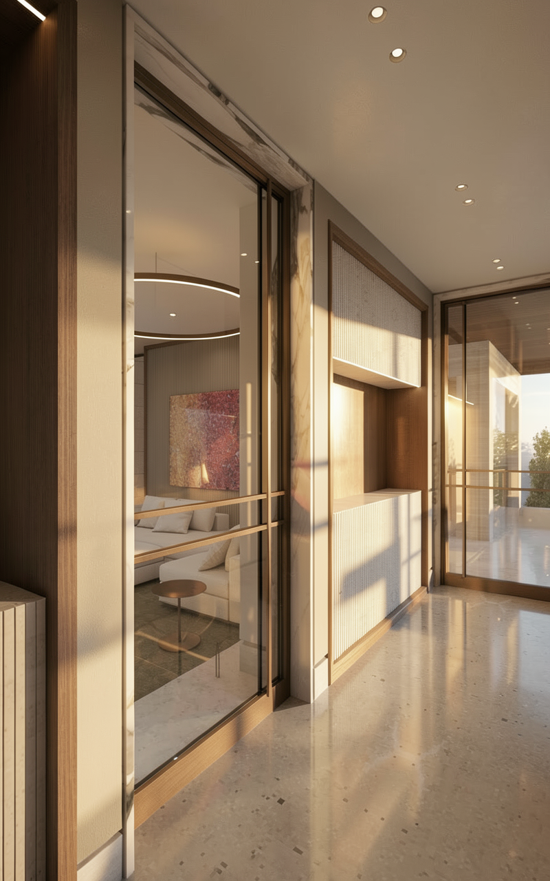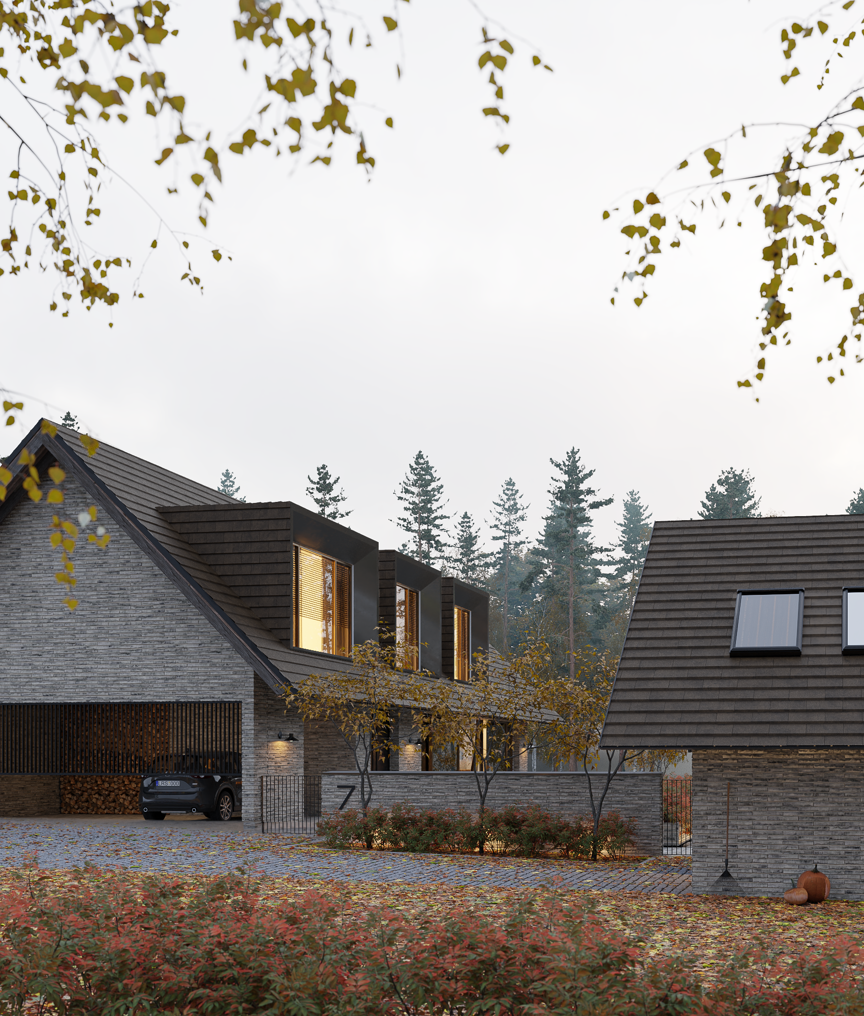 modernist exterior shot please change lanscape from autumn to summer architecture