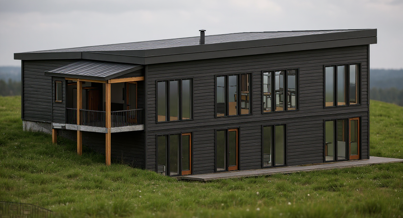 i need all 10 windows to have black trim around them keep the snow and everything else as is add a light fixture to both sides of the front door