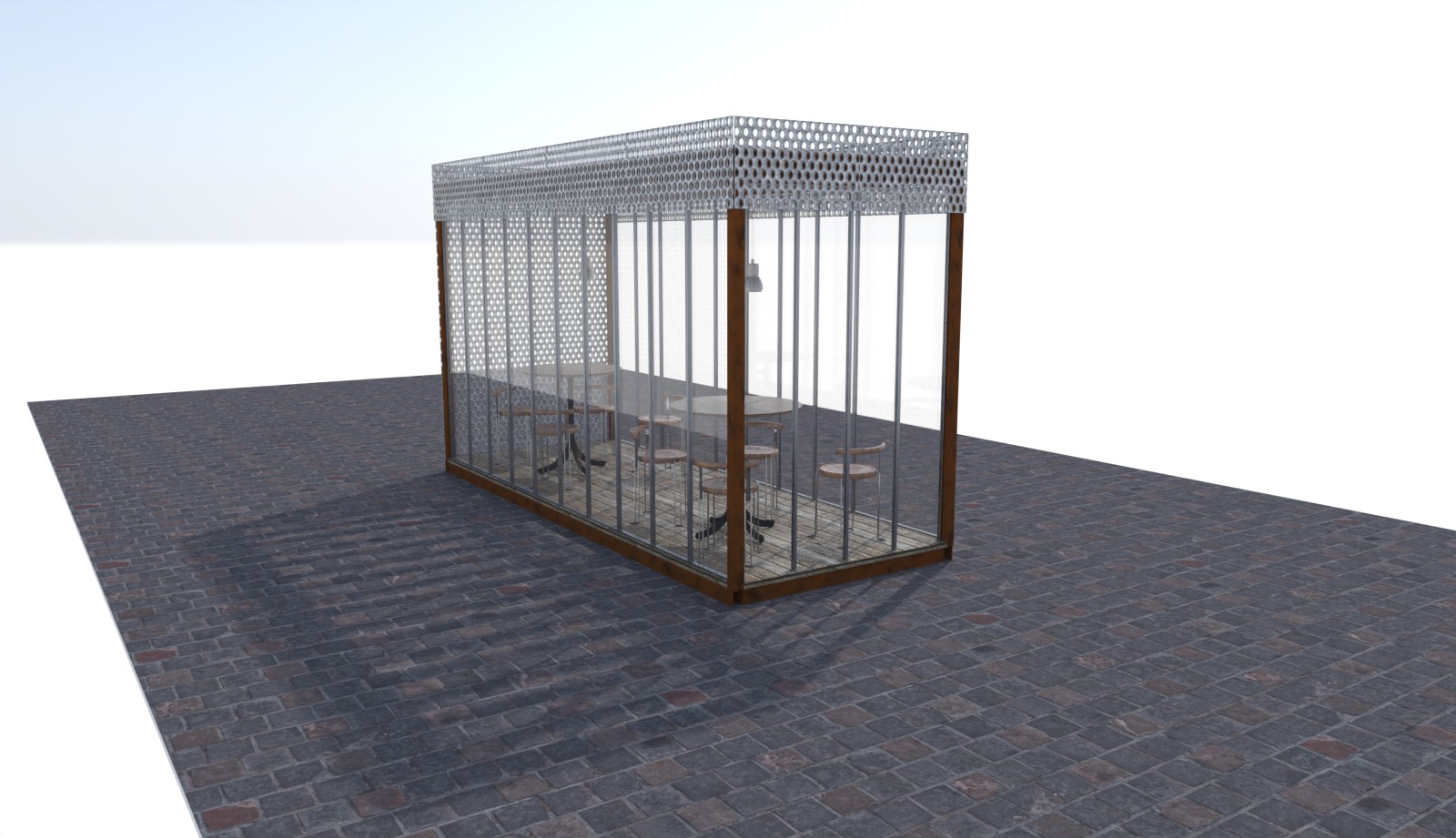 dehors in corten metti persone metti oggetti metti sfondo urbano toscano