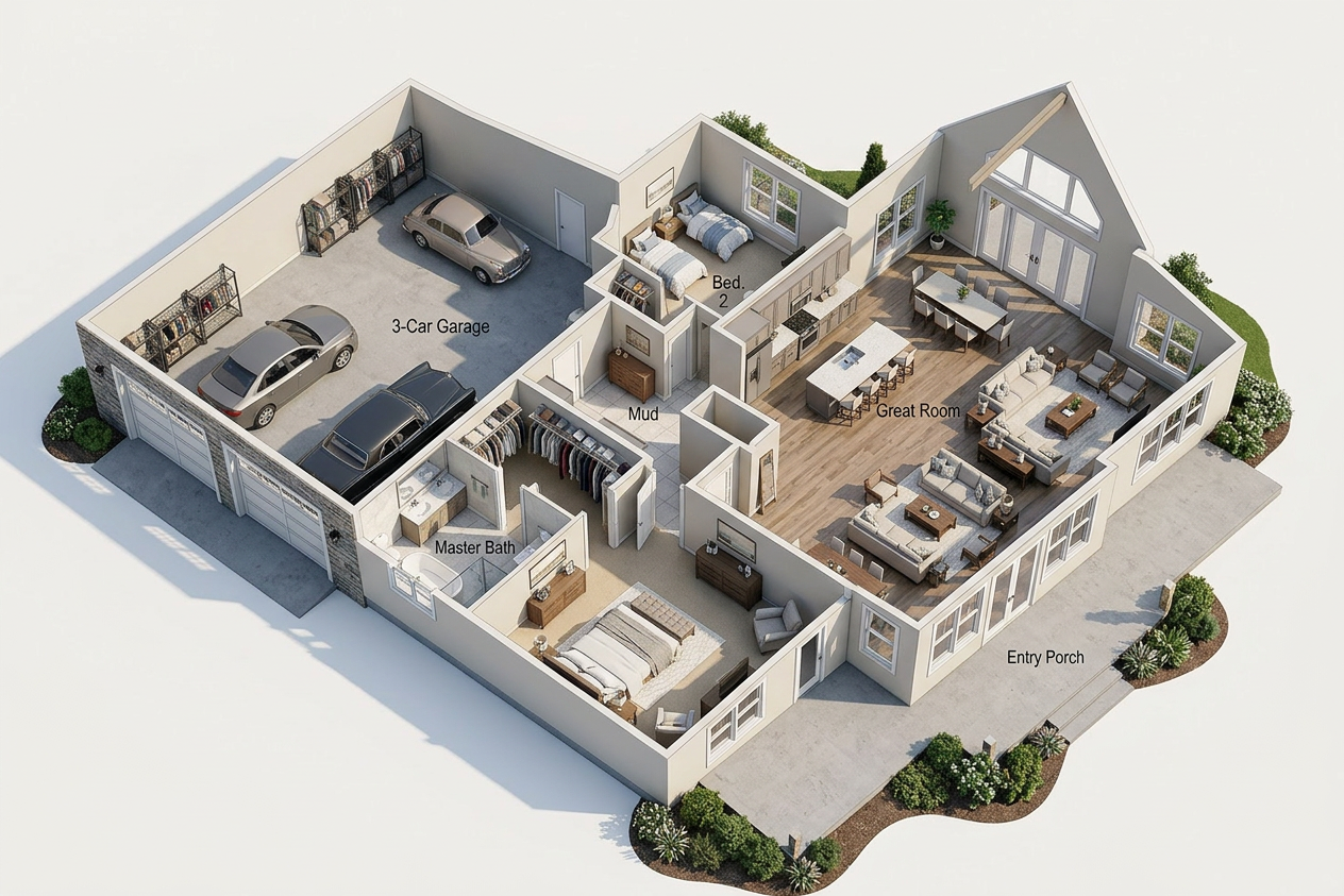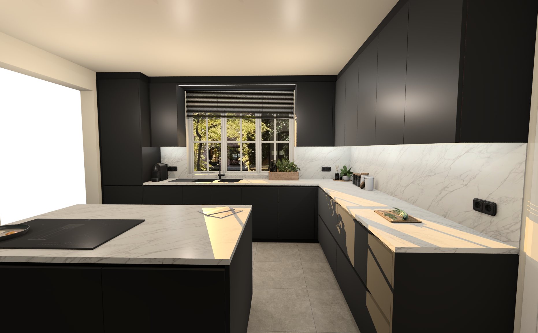 make the lighting sharper and more realistic add reflections in the window and on the cooking hob