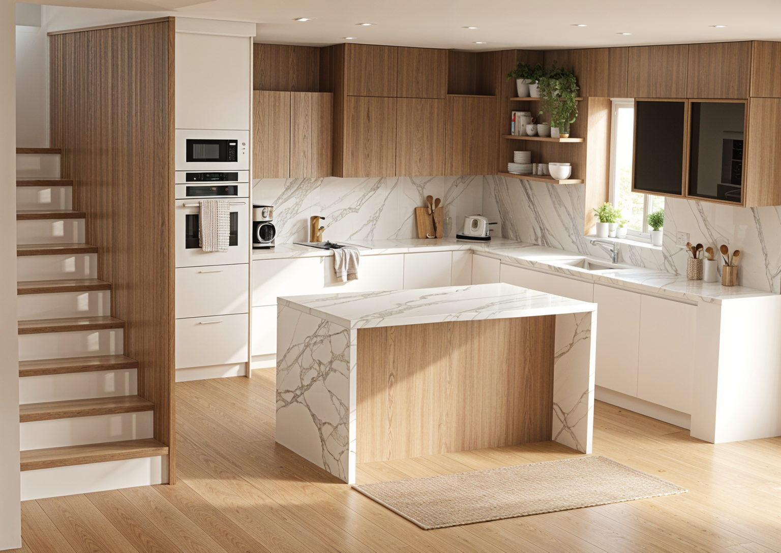 please render as lifelike kitchen with all cabinetry in little green slaked lime deep
