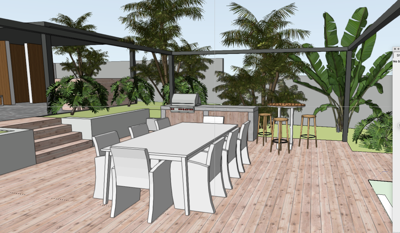 add louvres into roof frame add more subtropical planting