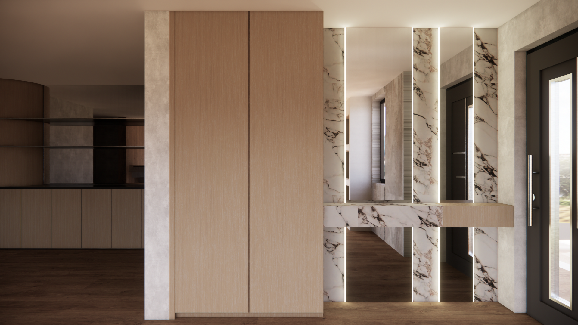 modern entrance wardrobe seamless oak very nice