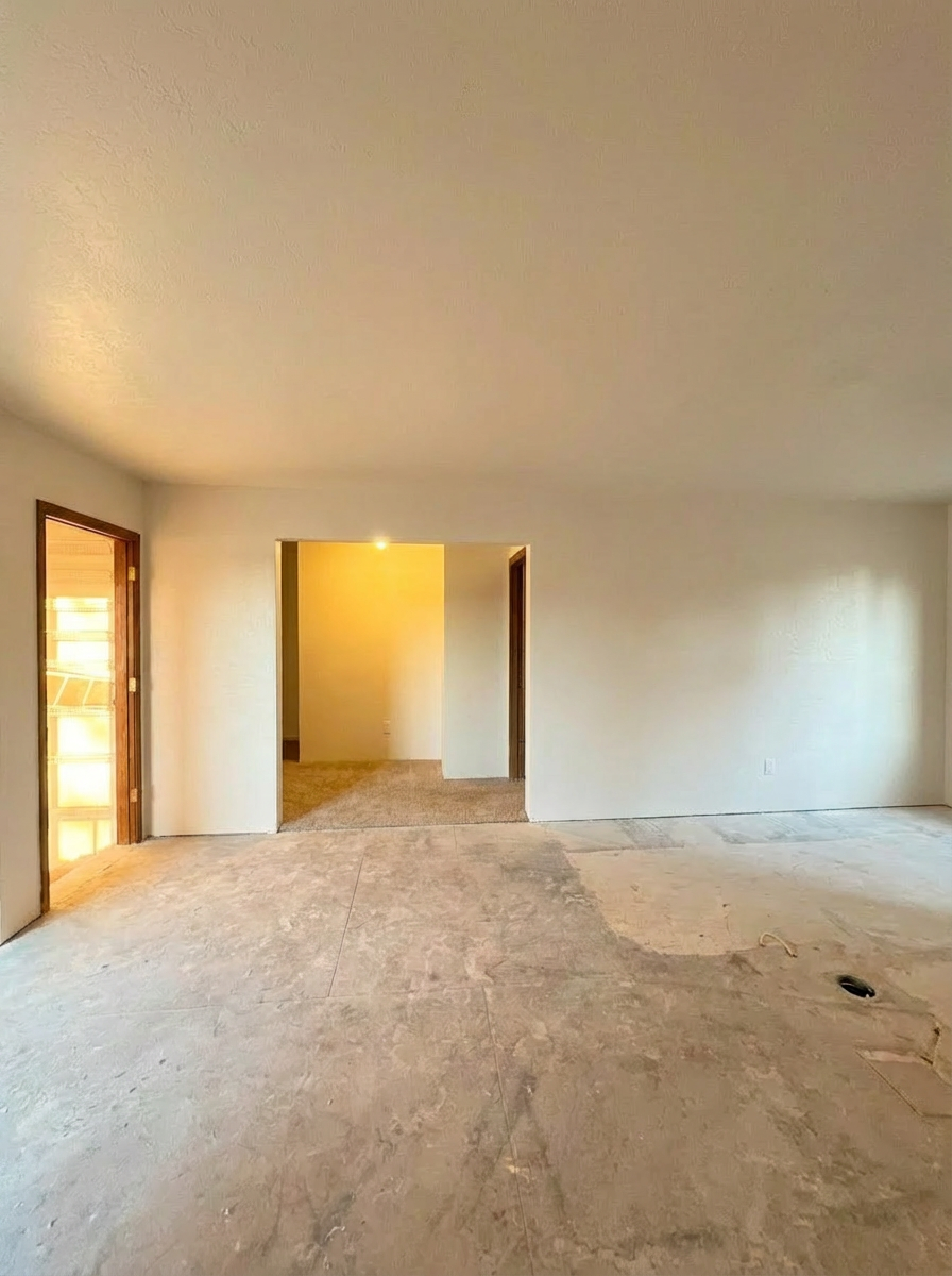 ceiling to be white and raked no beams add kitchen decor and a man and a lady standing in the kitchen drinking a cocktail tiled splashback to be white zellige look