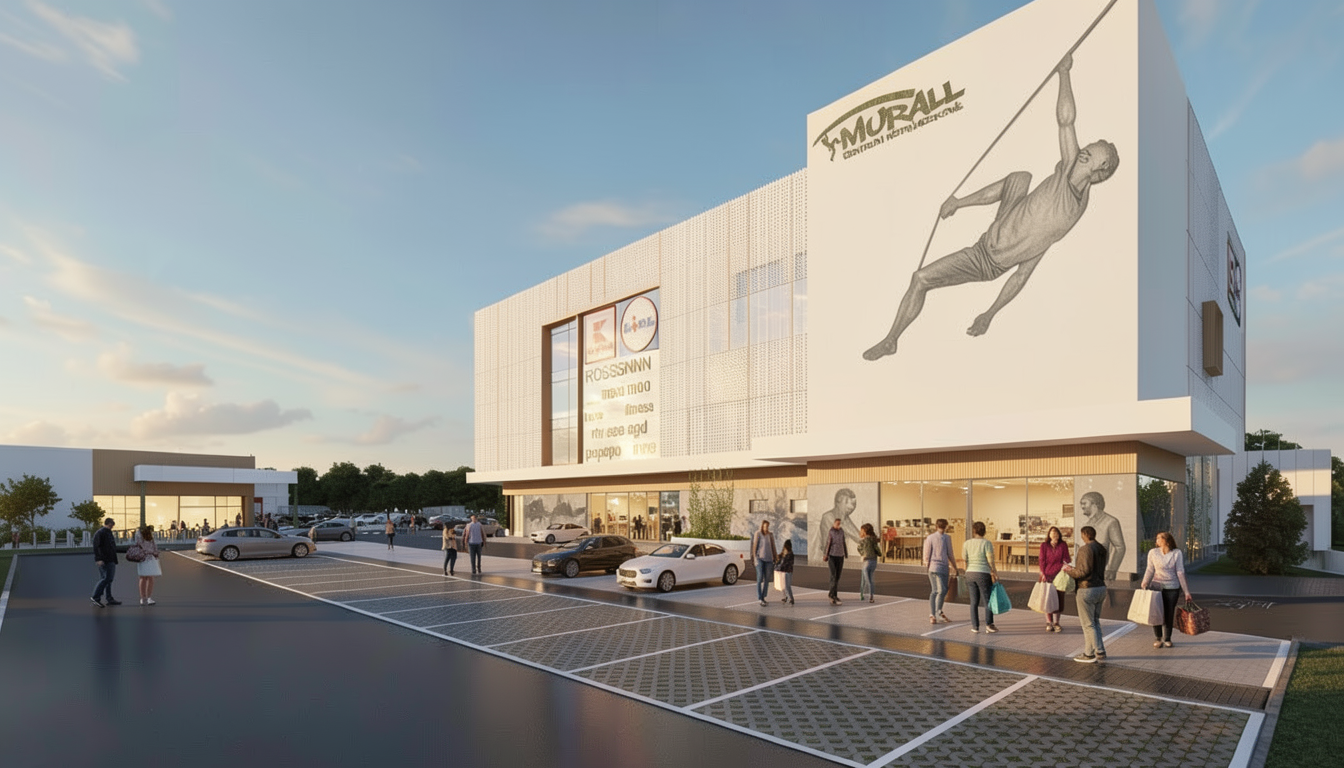 dodaj odbicia wiat a wn trz w oknach tylko po lewej stronie zdj cia dodaj 5 os b z zakupami na parkingu w r nych miejscach nie dodawaj dodatkowych okien i szk a je li ich nie ma na pierwotnym rysunku zamie grafik wspinaj cego si cz owieka na szare grafiti dodaj kilka samochod w na parkingu