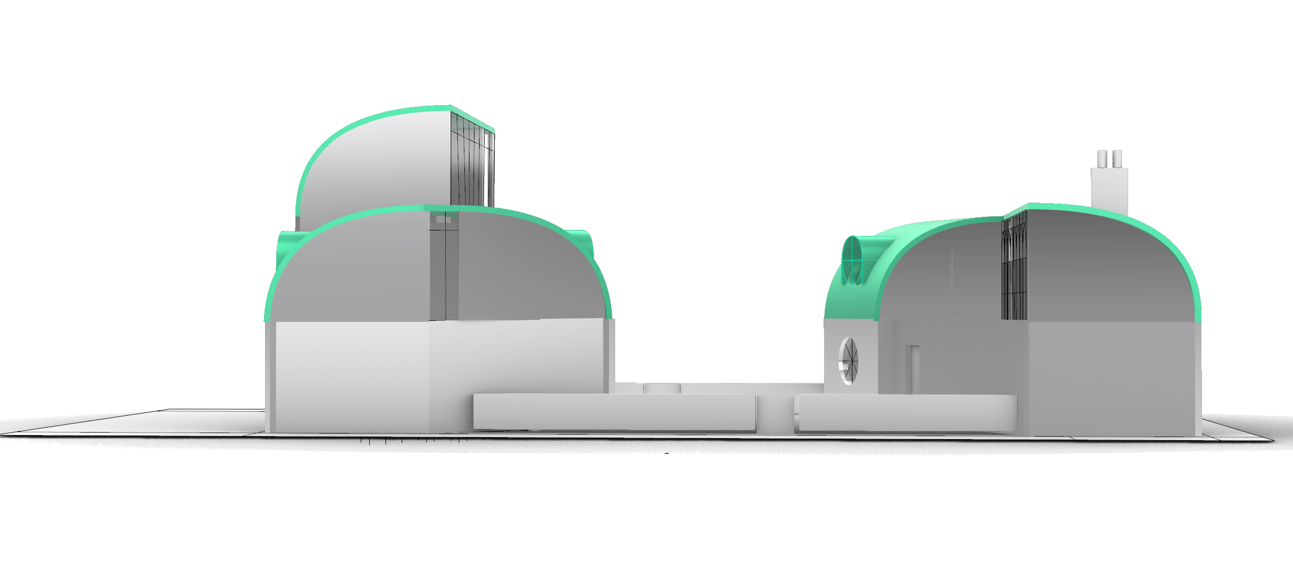 exterior shot exterior shot apply soft daylight with slight haze desaturated earthy tones and a cinematic mood emphasize minimalist composition muted colors and flat entourage silhouettes that blend graphically into the scene reduce hyper real reflections and glossiness adding subtle film grain for a photographic feel final image should feel like a conceptual architectural visualization calm atmospheric and editorial copper roof white plaster walls black iron window frames
