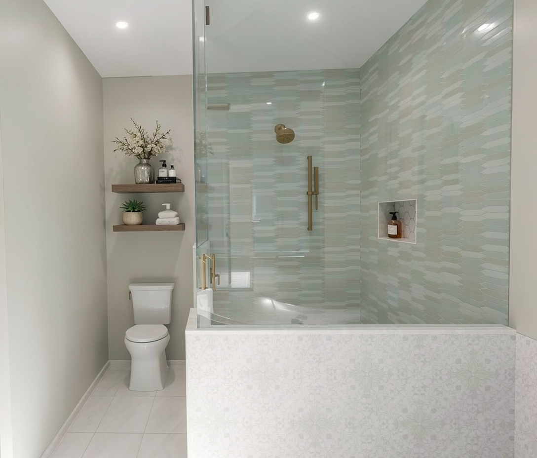 accessorize the floating shelves and shower niche do not add any new fixtures inside the shower do not add anything inside the shower