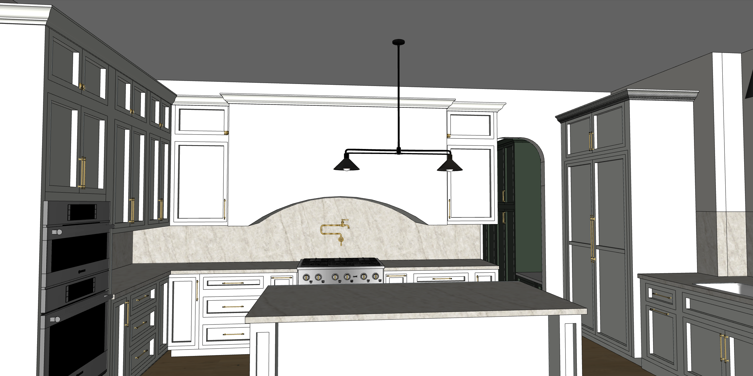 bright day time natural lighting soft shadows space is evenly lit downlights and pendant lights on white light 5000k lighting temperature interior photography realistic slightly reflective honed backsplash finish