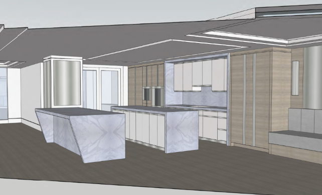 transform the provided elevation rendering into a hyper realistic editorial quality interior visualization that is indistinguishable from a professional interior photograph preserve the exact original geometry design layout proportions ceiling details wall depths openings doors and circulation paths with zero architectural changes render the space as a finished built interior using only daylight with realistic light bounce shadow falloff and a clean exposure similar to high end interior design photography the lighting should feel natural and refined apply materials with true to life behavior and depth smooth solid plank wood and matte never glossy stone and wall finishes must show layered depth not flat patterns edges and transitions should be softly broken and realistic avoiding sharp cgi perfect edges camera perspective should feel architectural and photographic eye level with a 24 35mm interior lens feel natural depth cues and balanced composition the result should feel grounded elegant and quietly luxurious aesthetic no creative interpretation no stylization no exaggeration focus exclusively on material accuracy lighting realism and photographic depth and light in the room