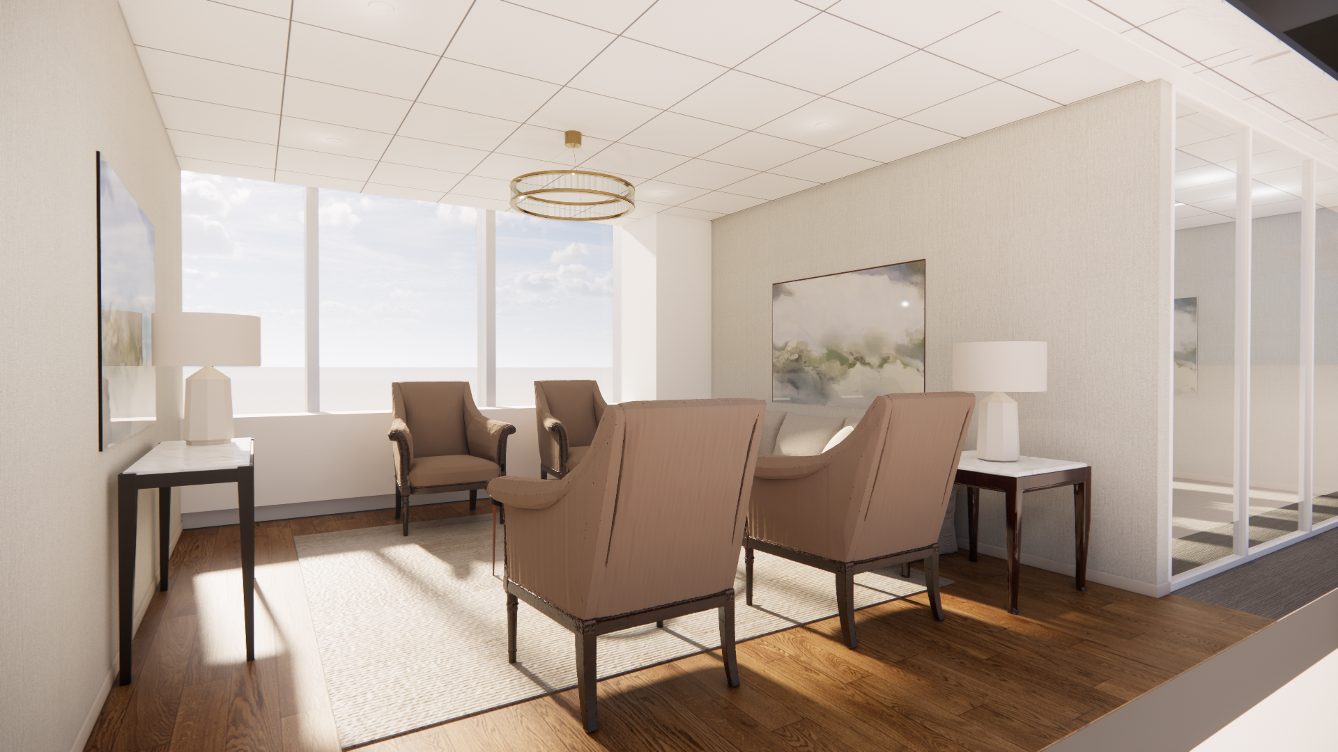 provide photo realistic rendering keep elements proportions and finishes as they are add views of new york midtown from 43rd floor