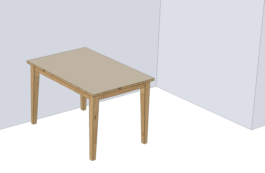 indoor dining table worktop is beige but the edge is wood background is apartment