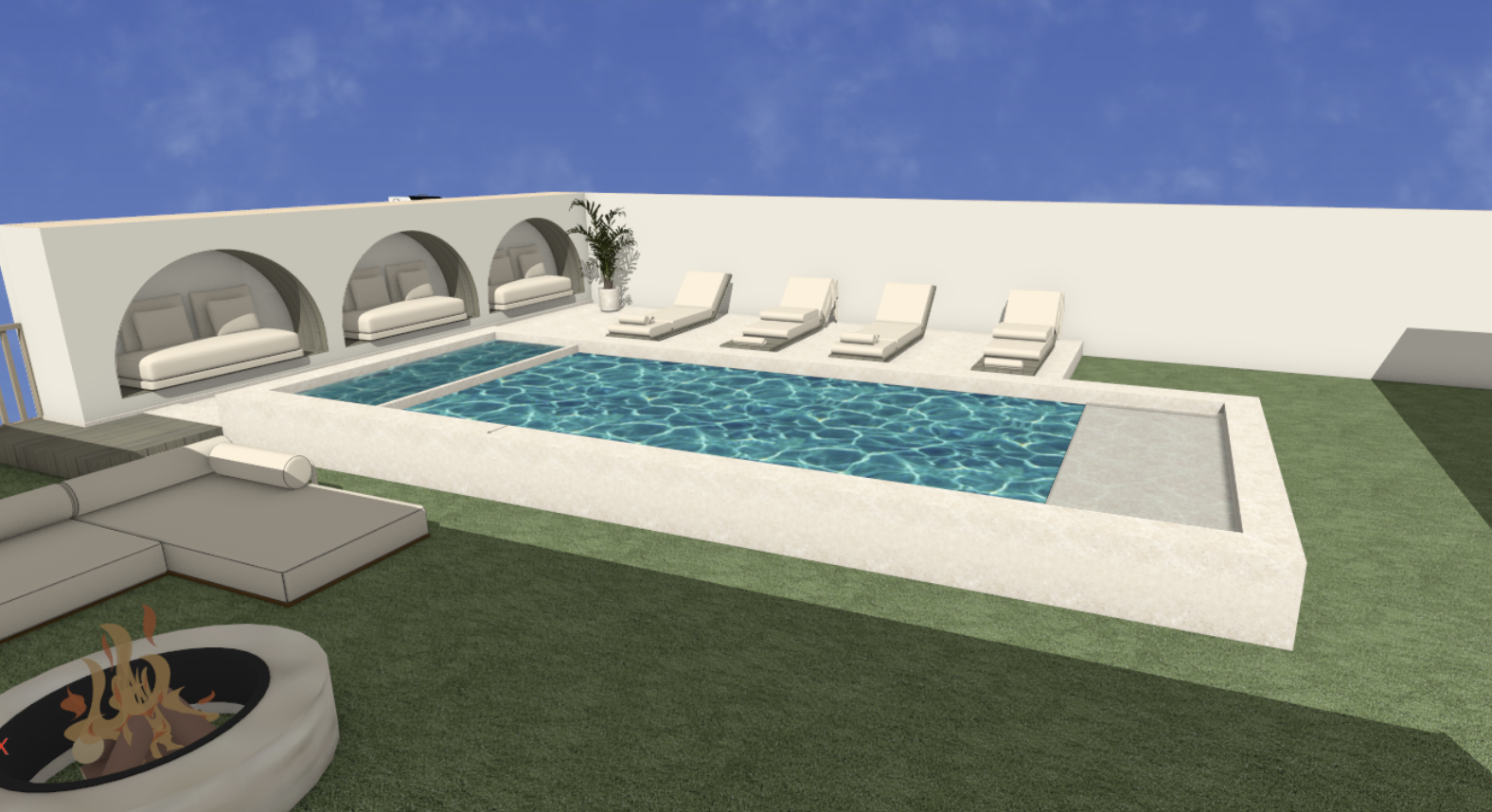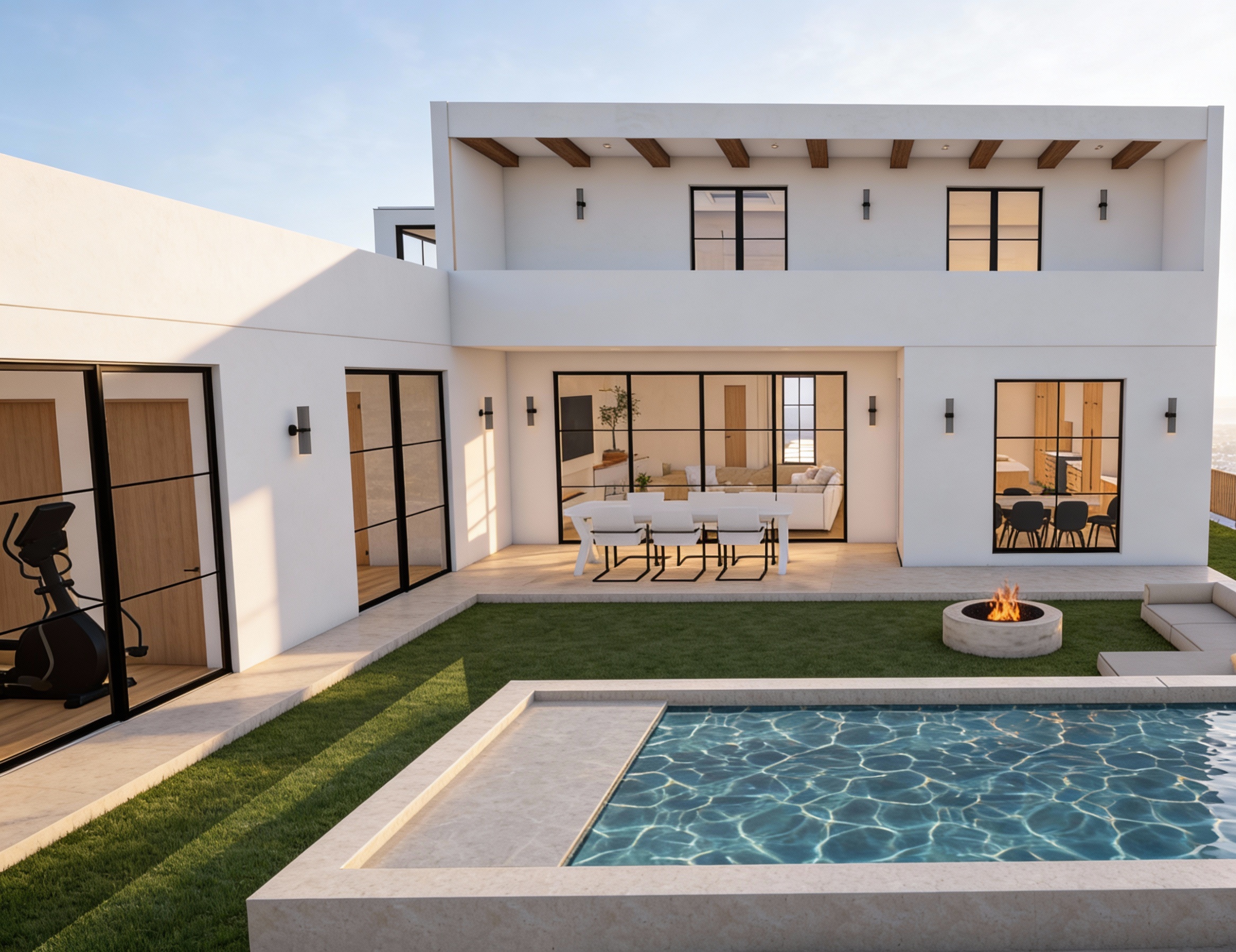modern exterior shot create a super realistic rendering based exactly on the provided image architecture