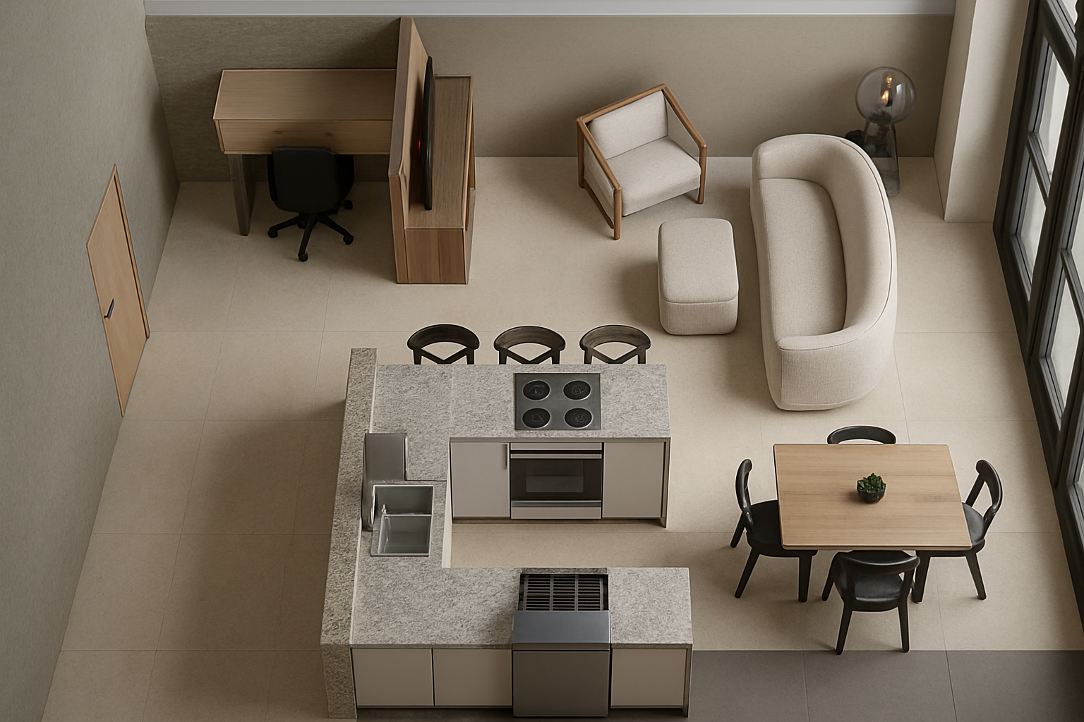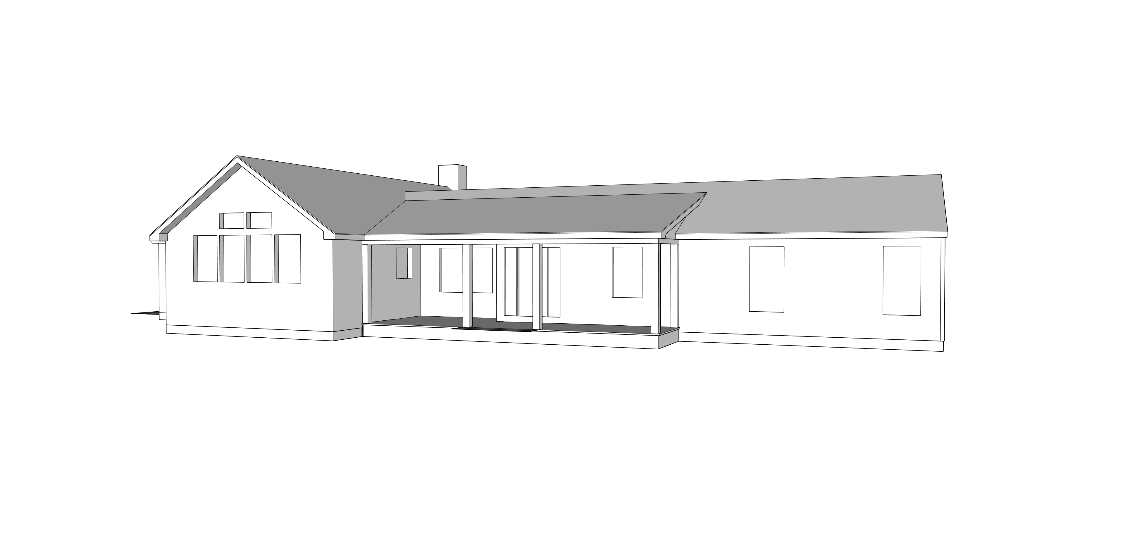 modern exterior shot modern farmhouse set in the woods with a drive coming up towards the left end architecture