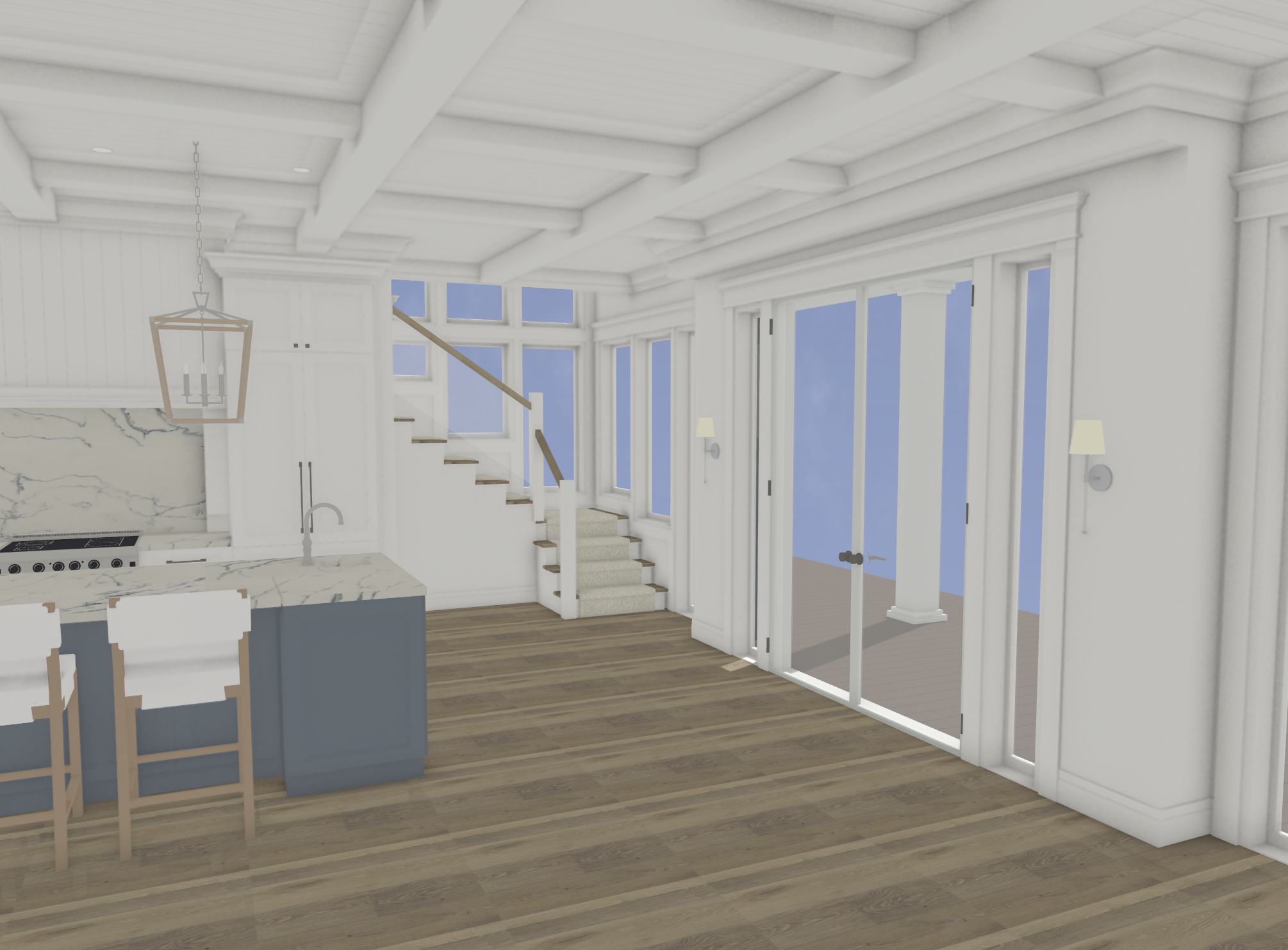 home is built over lake st clair there is another house next to this one by the stairs and lake view outside the french doors
