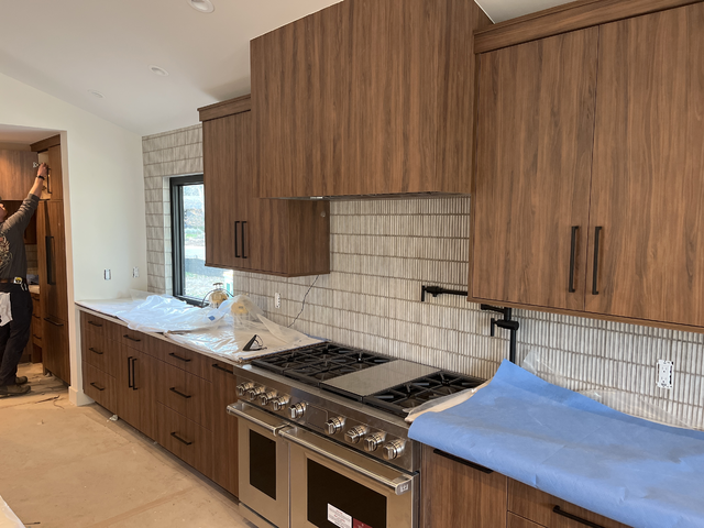 remove all debris from the countertop add flooring remove individual in the photo style the countertop remove sticker from appliance