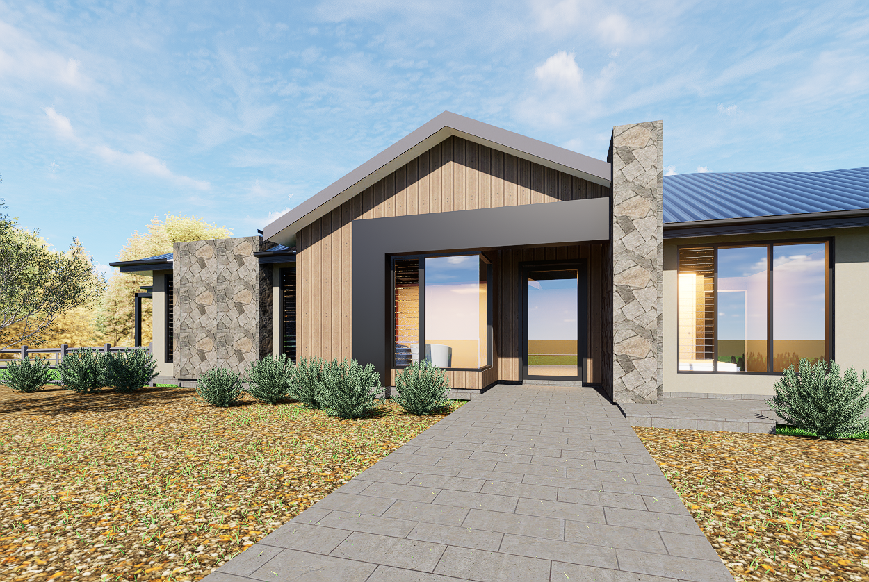 fix landscaping with bushes rocks and grassy plants add warm lights to inside windows