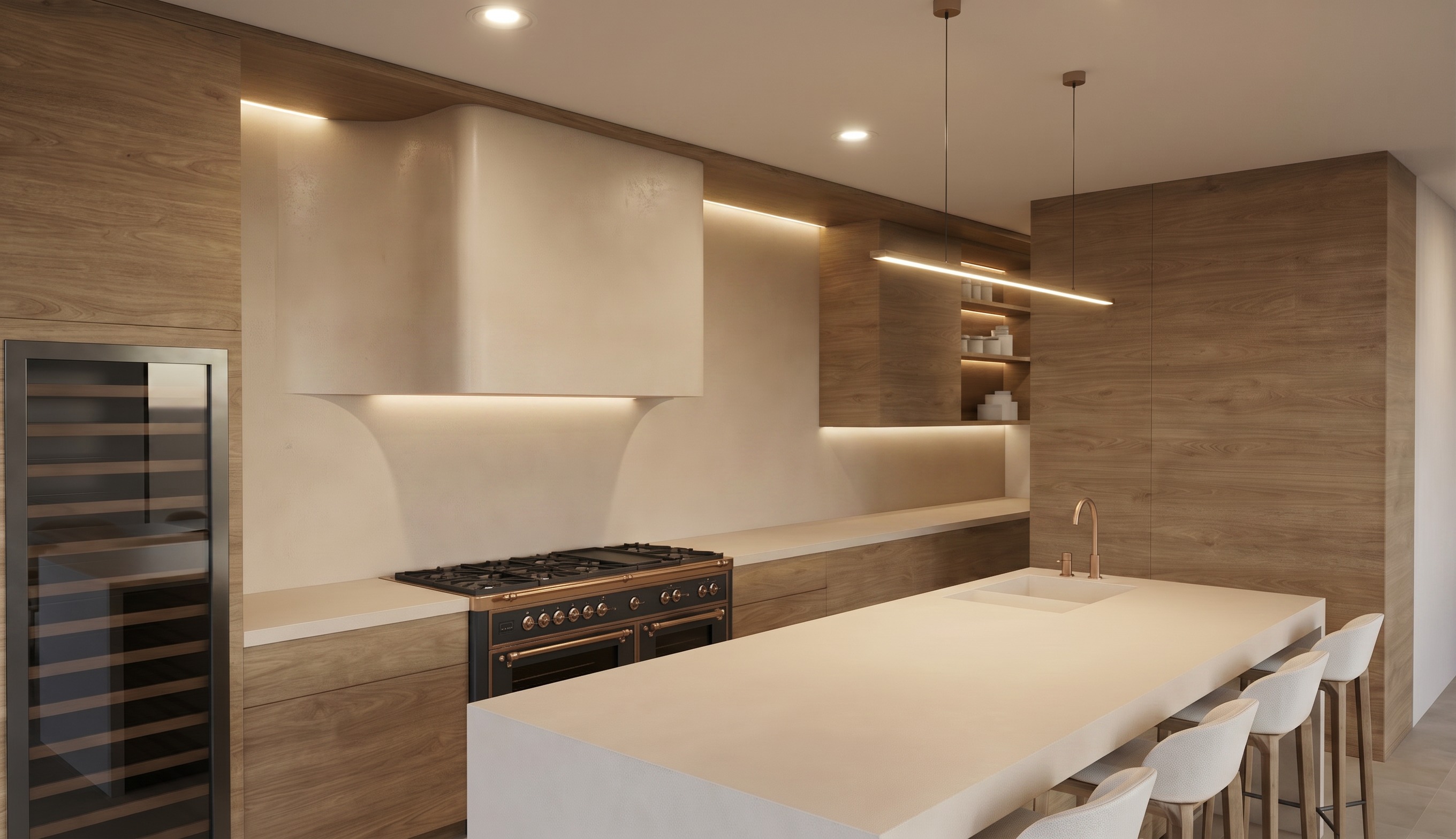 strict instruction maintain everything in the current image exactly as it is do not change any geometry objects layout materials colours camera angle perspective or composition do not move redesign or reinterpret anything only apply the following lighting refinements lighting shadows soften all existing shadows reduce harshness and dark contrast ensure shadows are gentle diffused and natural introduce soft natural ambient light coming from multiple directions not just one side light should feel evenly distributed across the space atmosphere slightly darken the overall scene in a balanced way while maintaining visibility and detail create a soft light finish calm subtle and easy on the eyes avoid any harsh highlights strong contrast or dramatic lighting realism ensure lighting behaves naturally across all surfaces maintain a photorealistic look like a real interior space with soft daylight final requirement the image must remain identical in every way structure geometry camera angle composition materials and objects with only softer shadows and improved natural lighting applied