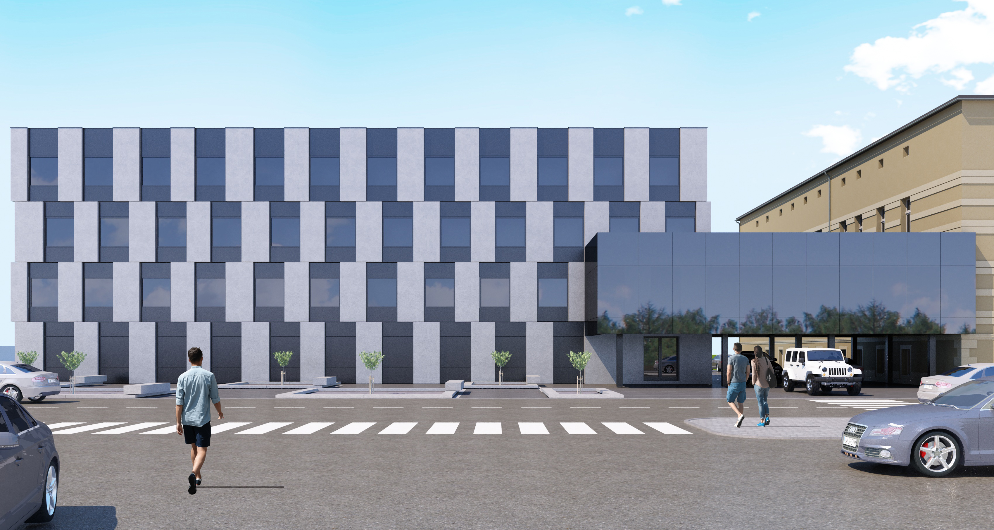exterior shot do not change the shapes of the buildings