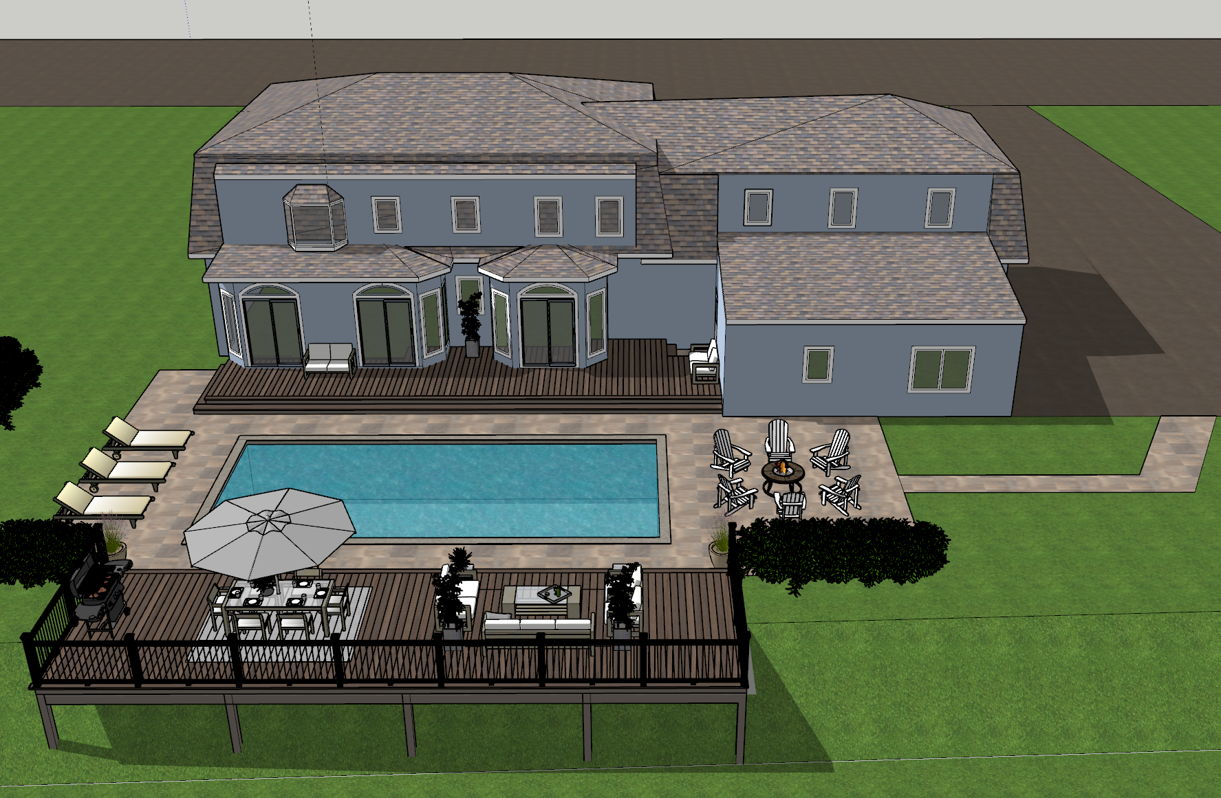 suburban background blue stucco house