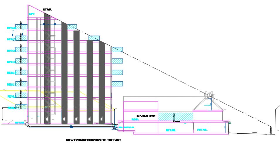 modernist exterior shot 8 storey building floor to ceiling windows brick to walls glass balconies and roof garden architecture