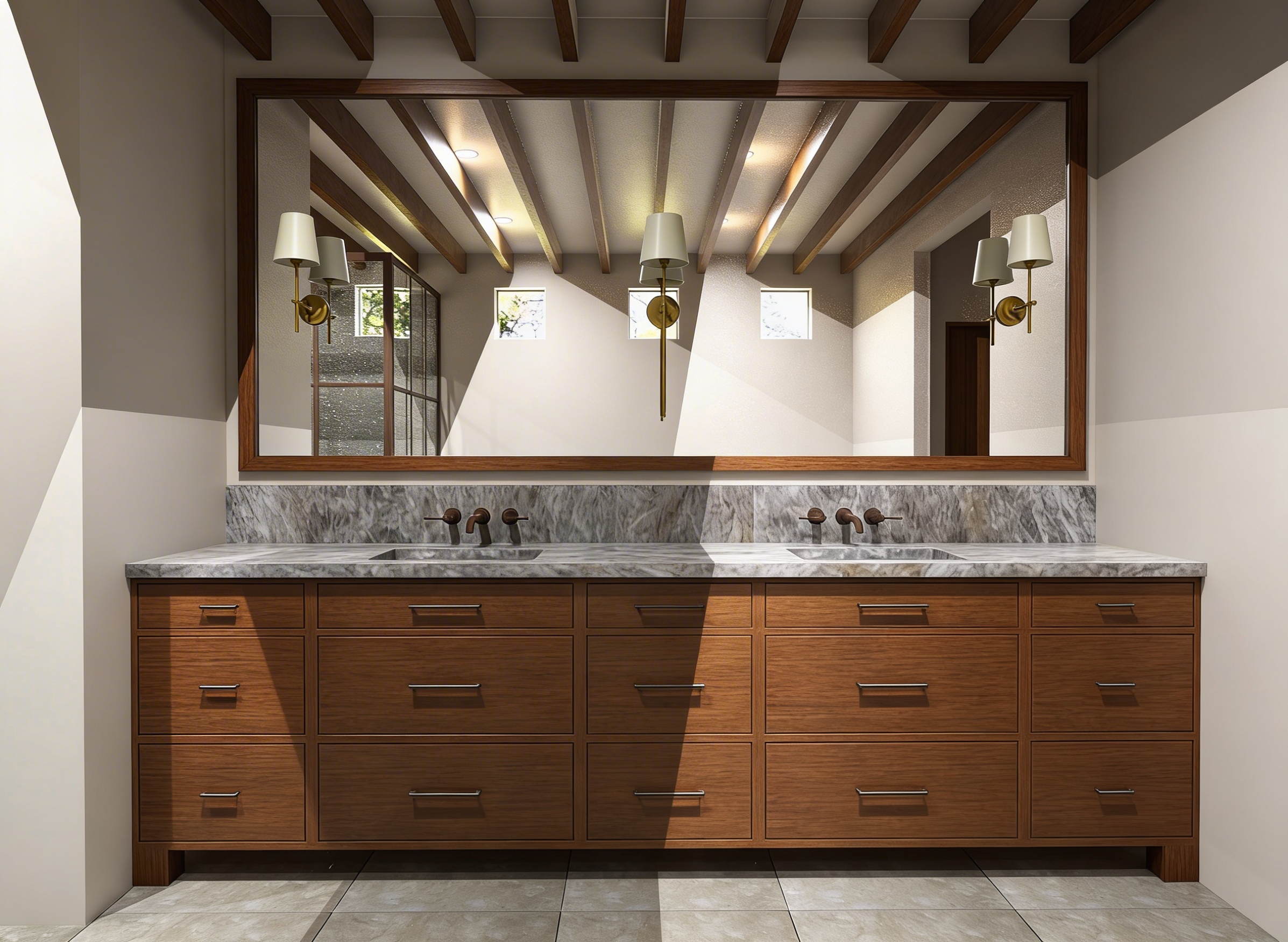 make it realistic moody modern keep everything light up the niche on the left wall with bronze insert walls get rid of the z x lines
