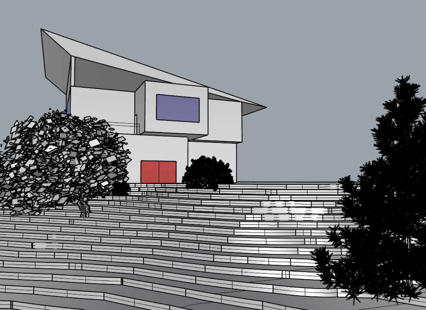 contemporary mountain research station architectural visualization sleek glass and metal panel fa ade with exposed steel framing perched in alpine landscape surrounded by evergreens and lots of trees with rugged rock formations midday sunlight crisp blue sky high contrast reflections on glass warm tones detailed environmental integration realistic materials and lighting cinematic composition archsynth style ultra detailed architectural rendering 8k photorealistic