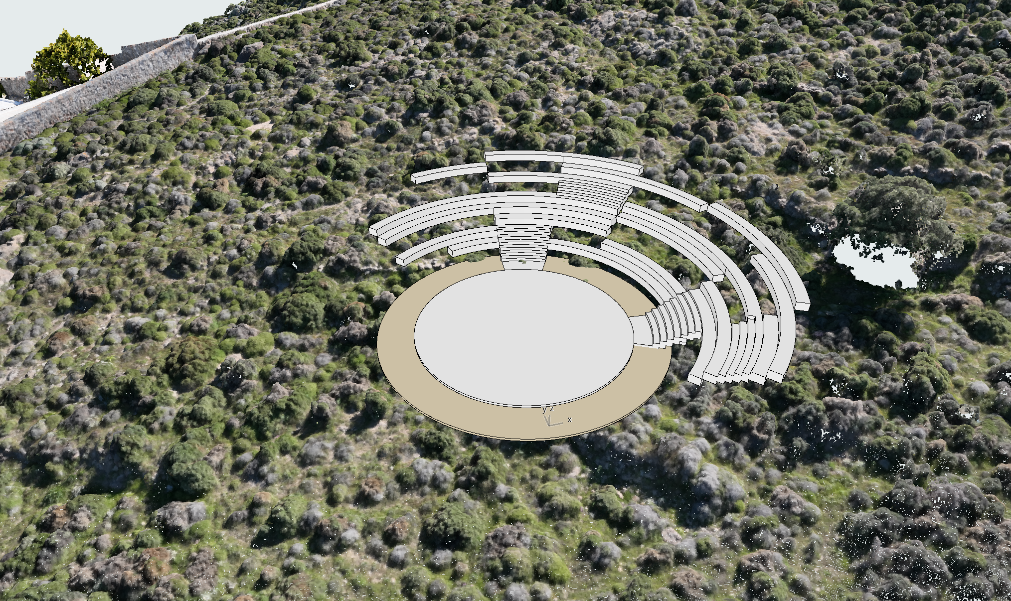 keeping the geometry from the image i am providig render this open air theater into the greek island scenery no added rows only my geometry high realism